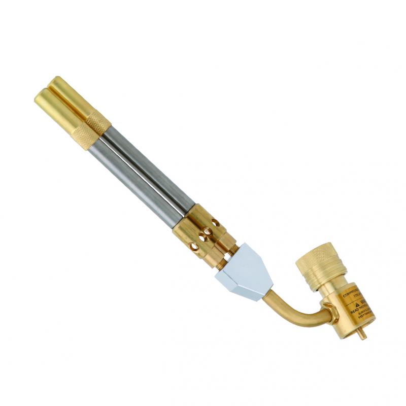 Газовая горелка DSZH WK-1D1 с двумя соплами для пайки медных труб. Большинство горелок DSZH наделяются зажигательным элементом(пьезой), который обеспечивает розжиг горелки одним нажатием, редуктором мощности пламени. Горелки газовые, рассчитанные под питание МАПП газом, оснащаются съёмными мини-баллонами, заправленными специальной газовой смесью, благодаря чему обеспечивается высокая рабочая температура и ровный (стабильный) выход пламени. Максимальная температура пламени до 2400 °C, что дает возможность спаять медь, алюминий.
