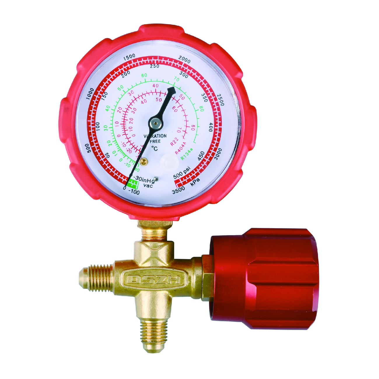 "Манометрический одновентильный коллектор DSZH WK-466H это инструмент для определения давления в холодильном контуре. Манометры бывают анлоговые-стрелочный и цифровый. В компании РМТ можно выбрать манометры для любого назначения. Манометры помогают сервис инженеру определить: ваккум, температуру кипения фреона, давления разных фреонах а так же опресовку азотом. Манометры бывают двух и одновентильные, вентиль прекрывает напраление фреона, смотровое стекло показывает состояние фреона. В комплете идут шланги Желтый-сервисный(к балону фреона, азота, вакумника). Красный-высокое давление , Синий-низкое давление. Новая серия манометрических коллекторов DSZH серии WK отличается высокой надежностью, качеством используемых материалов. Корпус манометров выполнен из алюминиевого сплава и покрыт резиной для защиты от повреждений. Металлические вставки в вентилях позволяет увеличить срок их службы. Манометрический коллектор WK-466H предназначен для работы с фреонами R22, R134A, R410A, R407C