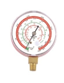 Данный манометр служит для цели измерения давления в промышленных системах холодоснабжения и кондиционирования, представляет собой измерительный прибор со шкалой давлений, предназначен для измерения глубины вакуума в системе, а так же фреон R22,R134,R407,R410. Данный механический манометр имеет чувствительный к давлению элемент спирального типа - трубку бурдона, который непосредственно двигает стрелку. "